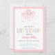 Este adorável convite apresenta uma nuvem com gotas de chuva coloridas e confete.