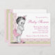 Bonito convite para chás de fraldas cor-de-rosa e verde. Este convite para chás de fraldas de vinheta rosa e verde giro é facilmente personalizado para o seu evento, adicionando detalhes do seu evento, estilo de fonte, tamanho de fonte e cor e texto.