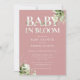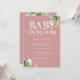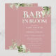 Bebê em chá de fraldas florescente com tipografia elegante e folhagem botânica bonito num fundo cor-de-rosa-rosa empoeirado. Projetado por Thisnotme©