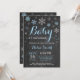 Bebê seu convite exterior frio do chá de fraldas do inverno. Convite do chá de fraldas do menino. O chá de fraldas do feriado de inverno convida. Flocos de neve azuis e brancos. Fundo do quadro. Para uma personalização mais adicional, clique por favor "personalizam-no" botão e usam-nos nossa ferramenta de design para alterar este modelo.