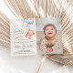 Convide amigos e família de estilo e dê o tom para o seu dia especial com este charmoso convite de aniversário. Design apresenta um ursinho de pelúcia com balões azuis sobre fundo bege.