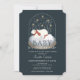 Este chico balbucioso " Bebê Está frio fora " convite para chás de fraldas neutro em gênero apresenta um globo de neve com ursos polares sob o céu noturno estrelado com neve. Há uma mãe urso polar e um filhote de urso polar num fundo azul escuro da meia-noite / marinho azul com estrelas douradas falsas e neve. O verso apresenta um fundo azul de ardósia claro com padrões de ursos polares, bagas e folhas. Personalize-o para as suas necessidades. Você pode encontrar produtos correspondentes na minha loja.