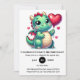 Convites Bebê Verde Dragão com Balão Cardíaco Aniversário