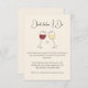 Este convite elegante, com um copo de vinho tinto e um copo de vinho branco, é a forma perfeita de convidar convidados para uma celebração na noite anterior ao casamento. Quer você esteja convidando um pequeno número de familiares e amigos após o ensaio ou hospedando uma festa de boas-vindas para todos os seus convidados, o texto pode ser personalizado para o seu evento. Saúde!