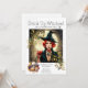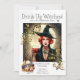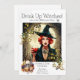 O convite apresenta uma ilustração cativante de uma bruxa, enfeitada num chapéu clássico de bruxa, bebendo vinho de um copo. Ela se posiciona contra um pano de fundo de uma lua de cheio hipnotizante, lançando um brilho encantador. A lua banha a cena numa inquietação, mas convidando o humor, dando o tom para uma noite mágica de folia.