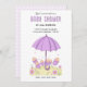 Este maravilhoso cartão de chá de fraldas captura a alegria e a maravilha da nova vida com sua ilustração brincalhona de bebês enrolados peludos sob um guarda-chuva roxo. Como se tirado de uma cena de um livro alegre para crianças, este cartão é perfeito para convidar convidados a comemorar a chegada não só de um, mas talvez múltiplos feixes de alegria! As flores coloridas e o pano de fundo macio e cheio de coração criam uma atmosfera balbuciosa ideal para um chá de fraldas de jardim. Este cartão é uma maneira maravilhosa de espalhar as notícias sobre os novos acréscimos à sua família, garantindo uma reunião memorável e animadora. Como alguém disse uma vez, "Um bebê é tão puro como um anjo e tão fresco como uma flor florescente." Celebre este novo começo com um convite tão especial como a ocasião!