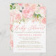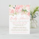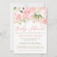 Convites de chá de bebê cor-de-rosa e dourada - super fofos e modernos. Estes convites apresentam cor d'água pintada de flores cor rosa e um pouco de verde com sotaques dourados. Perfeito para um chá de panela elegante.