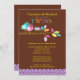 Comece o seu evento com nossos passarinhos bonitinhos ninho gêmeos Bebê Chá convidando a mãe mais doce e pais de pássaros sentados em um galho de árvore com filhotes roxos gêmeos em um ninho. Nosso convite para o chá de fraldas de gêmeos, moderno e coloridos, é feito em um fundo castanho de chocolate com uma bolinhas roxa e cobertura. Perfeito para um chá de fraldas gêmeo de meninas. Apenas personalize com suas informações e você está pronto para ir! Itens correspondentes, incluindo postagem de chá de fraldas gêmeos, adesivos favoritos, cartões de agradecimento e obrigado que você adesivos também está disponível em nosso compro. Também disponível em azul para um chá de fraldas gêmeo. © Dreamlike Magic