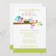 Comece o seu evento com o convite dos nossos gêmeos gêmeos Chás Baby Boy apresentando os pássaros mais doces mãe e pai sentados em um galho de árvore com um bebê verde gêmeo em um ninho. Nosso convite para chás de fraldas moderno e colorido de filhotes gêmeos é definido em um fundo branco nítido com uma borda e backing azul de bolinhas. Perfeito para um chá de fraldas gêmeo. Apenas personalize com suas informações e você está pronto para ir! Itens correspondentes, incluindo chá de fraldas de gêmeos, adesivos de favor, cartões de agradecimento e obrigado que você também está disponível em nosso compro. Também disponível em rosa para um chá de fraldas para meninas gêmeas. © Dreamlike Magic