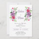 Bebês em Bloom, convite para chá de chá de fraldas duplo floral. A design apresenta um buquê bonito de anêmona, papoila e flor silvestre em tons roxos e cor-de-rosa, moldados com delicada paisagem verde. O arranjo floral é em aquarela enquanto os bebês no chá de fraldas Bloom são escritos com letra casual. Perfeito para uma flor selvagem moderna, primavera de Verão, rosa, roxo ou chá de fraldas floral.