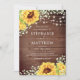 Estes convites para o casamento apresentam um design de girassol de cor d'água com flores do hálito de bebês sobre um fundo de madeira. Personalize-os com o seu próprio texto. Itens de suíte de casamento também disponíveis. Visite nossa loja para ver a gama de produtos que você pode personalizar para o seu dia de casamento.