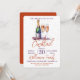 Um Convite para uma Festa de Cocktail. Desenho de uma garrafa de champanhe espumante, vinho espumante e 2 taças de haste. Um adorável design de celebração com texto laranja queimado e roxo convidando seus convidados para se juntarem a você para uma festa de bebidas festivas de feriado. Fácil de personalizar com os detalhes da sua festa.
