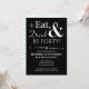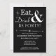 Convide amigos e família para ajudá-lo a comemorar seu aniversário de 40 anos com este convite de festas preto branco retrógrado sobre Comer preto, Beber e Ser Quarenta!.
