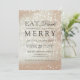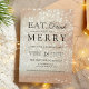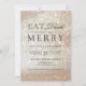 Coma Bebida e Seja Feliz Festa de Natal | Comemora-se a época de férias com esta fotografia moderna, falsa, rosa dourada, de brilho dos bokeh e com uma tipografia elegante.