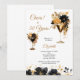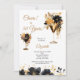 Lindas Bebidas Pretas e Douradas e Flores Um brinde a 50 Anos de convite de aniversário para ela. Todos os campos são editáveis. Altere o nome, o ano e os detalhes da festa. Disponível em impressão ou download digital.