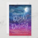 Postar bebidas de casamento e dançar à noite em convites para eventos noturnos. Personalize com seus próprios detalhes de evento. Outros produtos de casamento correspondentes estão disponíveis. © Estrelas originais e céu lua à noite pintado à mão com arte acrílica e design por Sarah Trett para www.mylittleedenweddings.com
