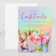 Apresentando um convite moderno e simples para festa de cocktails, a maneira perfeita de convidar seus convidados com estilo! Este convite fofo apresenta bebidas coloridas em copos de água e letras em script sobre um fundo holográfico em arco-íris, criando um visual divertido e único que certamente irá impressionar. Se você está planejando uma festa de cocktails, celebração de aniversário ou apenas deseja adicionar um toque de cor e verão ao seu evento, nosso convite é a escolha ideal.