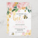 Convites Bee Day Bumblebee primeiro aniversario rosa Flor I
