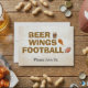 Get ready for the big game with this fun and rustic "Beer Wings Football" invitation! This design features bold brown typography accompanied by playful illustrations of a frothy beer mug, a chicken wing, and an American football, all set against a textured beige parchment background. It is the perfect invite for Super Bowl parties, football playoff viewings, tailgates, men's birthday parties, or a casual bachelor party. The bottom text "Please Join Us" is fully customizable, allowing you to easily add your specific event details.