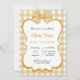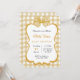 Este convite para o chá de fraldas apresenta um fundo de verificação bege e branco com um arco bege grande no topo. A área central é cercada por um arco de ouro, perfeito para adicionar texto pessoal. A design é encantadora e elegante, perfeita para celebrar um novo bebê.