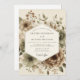 Soft beige and muted earth tones create an autumnal floral display. Lush botanical elements and blooming flowers evoke a romantic, vintage feel. This design is perfect for a warm, rustic celebration.