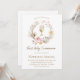 Convites beige pink flowers wreath First Communion