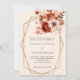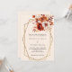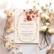 Para um casamento elegante e romântico. Um bege macio, um bege decorado com fundo colorido creme e florais cor de laranja queimados. Um quadro geométrico dourado. Personalize e adicione seus nomes e detalhes. Traseiro: bege colorido.