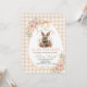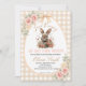 Celebrate your new arrival with this charming "Some Bunny is on the Way" Baby Shower invitation. Featuring a sweet watercolor baby bunny in a rustic basket surrounded by soft spring florals and a trendy coquette bow. The background features a classic beige and white gingham (Vichy) pattern that adds a cozy, cottagecore touch. Perfect for spring or Easter-themed baby showers.