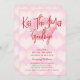 Esta design apresenta um tema de chá de panela "Beije a Miss Adeus" com corações de amor e marca de beijo de batom acrescentando um toque lúdico a este chá de panela de dia de os namorados romântico. Este cartão pode ser facilmente editado com os detalhes do seu evento pessoal.