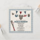 Convites para chuveiros de beisebol, brancos, vermelhos e azuis, e convites com um boné de beisebol temático e mais roupa de baseball pendurado em uma linha de roupas. Uma linha vermelha e azul de pennant pendura sobre ela. Claro que um convite para o tema do beisebol não seria completo com um taco de baseball, bola e placa de casa em uma bela fronteira azul e branca de gingham. Adicione o ano de nascimento do seu bebê e o sobrenome da camisa de camisa de camisa na parte de trás do cartão. Trabalho de arte e ilustração © Chrissy H. Estúdios, LLC. Todos os Direitos Reservados.