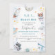Design do espaço exterior admirável, com design de aquarela com foguetes, planetas, estrelas e animais da floresta de astronauta giros, um guaxinim e um urso com este design cósmico acrescenta um toque lúdico e imaginativo à sua celebração.