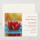 Um convite de casamento com uma fotografia de uma lagoa com uma linda flor de lótus vermelha emergindo no topo.