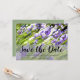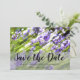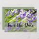 Um belo anúncio de casamento "Salve a Data" com um fundo floral Lavanda e personalização.