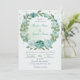 flores azuis românticas verdes folhas de coroa botânica convite para casamento
