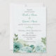 flores azuis românticas verdes folhas convite para casamento botânico