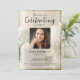 Um convite de celebração de vida lindo, apresentando a foto da pessoa amada e texto personalizado. O fundo apresenta velas brancas - calmo e tranquilo. (Você pode facilmente alterar a foto de fundo para a sua própria.) Clássico, mas único - este modelo é muito fácil de personalizar e também será uma lembrança maravilhosa de memorial.