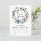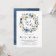 Nossos incríveis convites à festa de formatura de Bela Sanguínea mostram o "Partido Formando" em um roteiro de caligrafia moderno cercado por uma coroa floral de antigas flores brancas e azuis-d-água, com folhas verdes mudas. O verso do convite apresenta um fundo de cor azul profunda. Personalize os convites de festa de formatura floral adicionando o nome do formando e os detalhes da parte.