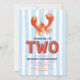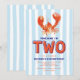 Coloque suas pinças nestos adoráveis convites de festa temática de Lagostim para a festa de 2 anos do seu pequeno! Adornado com um charmoso lagostim e emoldurado por um fundo listrado azul e branco elegante, é um convite de festa que você não vai esquecer.