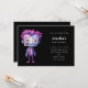 Convite de aniversário com uma bela ilustração. Monstro de Frankenstein com cabelo rosa e roxo e um terno e gravata.