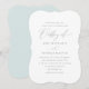 Simples e elegante convite de casamento azul e branco contém belos roteiro de caligrafia e um pastel atrás do cartão. Por favor, veja esta coleção de casamentos de chic para coordenar acessórios de correio.