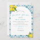 Celebre o amor e a alegria com um belo chá de panela inspirado pelo encanto da Itália, com uma design de aquarela estonteante de azulejos italianos vibrantes e limões frescos. As braçadeiras de aquarela suaves e correntes criam uma atmosfera sonhadora, com padrões azulejos intrincados em tons de azul, amarelo e branco, lembrando a elegância rústica do campo italiano.