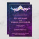 Um design adorável, o fundo azul e roxo tem uma fonte colorida e nítida. Este convite para casamento é muito atraente e atraente. Compre seu convite de casamento hoje! Clipart floral: Trabalho de arte criado por: AMBilustrações http://www.etsy.com/shop/AMBillustrations