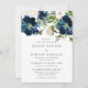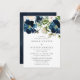 Convites Belo Casamento de Flores de Água Blush e Marinho