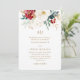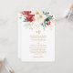 Este belo convite para o casamento floral apresenta um buquê de cor vermelha e branca de inverno com folhas de verde e dourado falso. Inclui um monograma elegante e é perfeito para um Natal ou casamento no inverno.