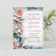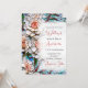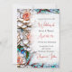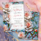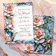 Uma ilustração magnífica imitando um vidro colorido e um mosaico de azulejos de coral, com sotaques azuis e coloridos. Estes convites de casamento elegantes têm uma bela estética vintage.
