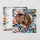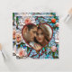 Bonito noiva e as iniciais do noivo, convite de casamento para fotos de coração. Uma ilustração magnífica imitando um vidro colorido e um mosaico de azulejos de coral, com sotaques azuis e coloridos. Carregue sua própria foto no coração na área de personalização.
