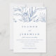 Este belo convite de casamento azul e branco apresenta um delicado padrão floral azul ilustrado com flores adoráveis e folhagem romântica. O verso é uma foto de cheio. Eterno e romântico, este belo convite de casamento inclui tipografia clássica e uma sofisticada inspiração no estilo da chinoiserie.