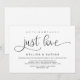 Belo Moderno Casual Elegante romântico Preto Nada de Luxo Apenas Amor tipo de letra, Anúncio de Fuga de Casamento, Convite. Isto é perfeito para a recepção do seu casamento e festa de celebração pós-casamento. Adicione seus detalhes no tipo de letra / letra correspondente.
