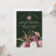 O convite para casamento simples e chic apresenta lindas pessegueiras terracottas, ameixas, flores brancas de vassoura e folhas com bonito tipografia de guião num fundo verde escuro. Por favor, veja esta coleção de casamento moderna para coordenar acessórios de correio.