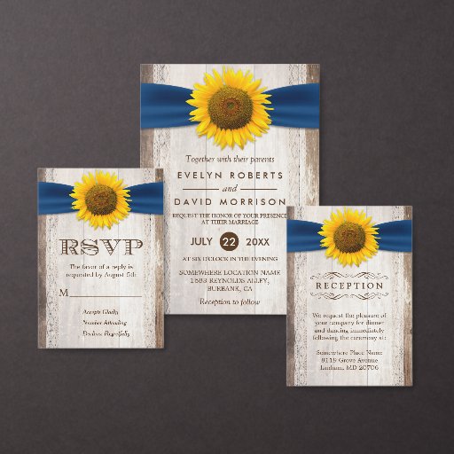 Invitation Suite: Rustic Sunflower Navy RibbonCriado por Scott C.